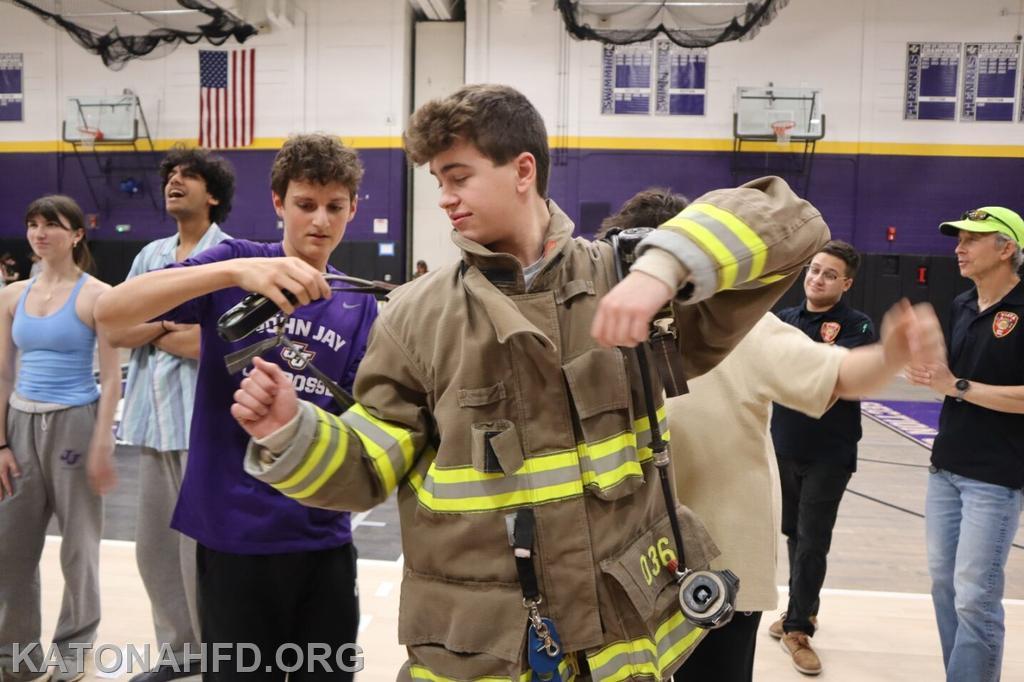 For the third year in a row, in an effort to shed light on a national volunteer firefighter shortage, four Westchester fire departments will challenge John Jay High School students in the popular Trial By Fire firefighting. On Wednesday, April 29th and Thursday, April 30th, students will compete in a firefighter obstacle course during their PE class. Students will see who can get geared up the fastest, drag a downed firefighter to safety, and participate in other evolutions designed to test firefighting and communication skills.